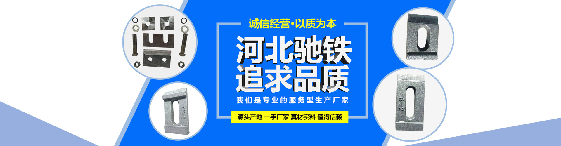 主要產(chǎn)品:鐵路配件、行車配件、工礦配件、魚尾板、道釘、壓軌器、軌道壓板、軌距拉桿、護(hù)軌扣板、T型螺栓、魚尾螺栓、彈條、軌距擋板